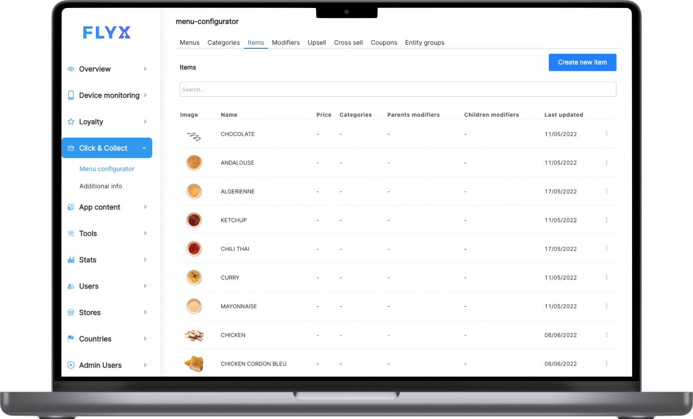 With FLYX Menu Configurator, you can create different menus based on customers’ needs and preferences. This allows you to tailor your offerings and ensure that you always have the right products available at the right time.